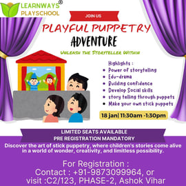 With a focus on Summer Camp, Sports and Fitness, Tuition Classes, Chess, Gymnastics, Science, Workshops, Dance and Music, STEM, Abacus, PlaySchools, Piano, Guitar, Keyboard, Casio, Reading Writing, Handwriting, Art and Craft, Sketching, Calligraphy, Phonics, Hulahoop, Drama Theatre, Public Speaking, Languages, Creative Writing, Festive, Extra-curriculars, Story Telling, Christmas Carnival, Winter Camp, Taekwondo, Martial Arts, Mathematics, Hindi, Yoga, Painting, Football, Basket Ball, Volleyball, Rubiks Cube, Vedic Maths, Jazz, Homework Classes, Drawing, Daycare, English Speaking, Dandiya and Garba, Preschool, Contests and Competitions, Republic Day Workshops, Robotics, Coding, Junior School Admissions, Childrens Day, After School Activities and a nurturing environment, Learn Ways Play School has become a go-to choice for parents in Ashok Vihar looking for meaningful, fun, and skill-building after-school options.